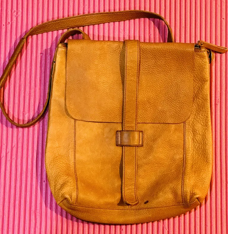 Duluth Trading Women's Lifetime Leather Convertible Messenger, Cognac