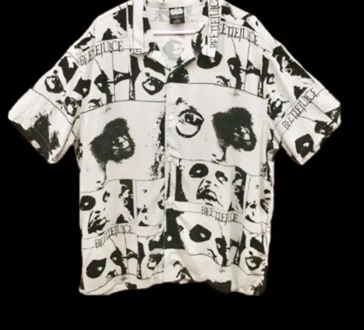 Beetlejuice Grunge Style All Over Print Button Up Short Sleeve Shirt XL