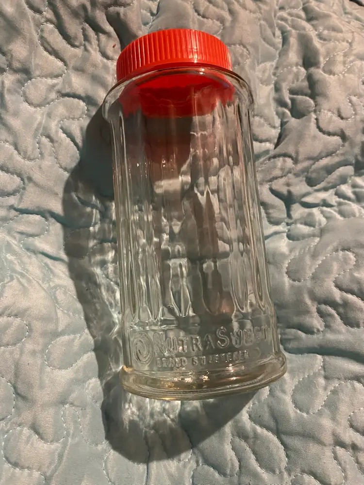 Vintage Nutra Sweet Glass Dispenser Jar Clear 7" tall