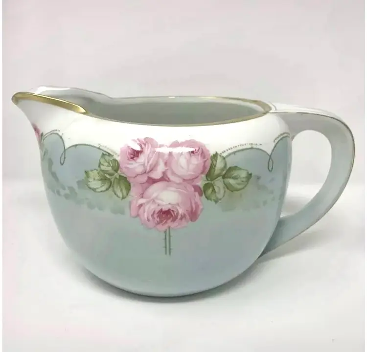 Antique R S Germany Reinhold Schlegelmilch Cider Pitcher Blue Pink Roses 5 1/2” Hand Painted
