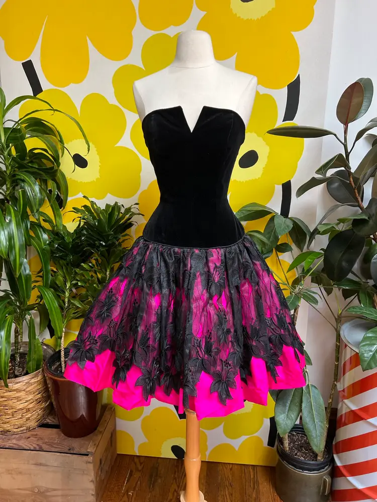 INSANE 80s Velvet Corset V plunge Petticoat Cocktail Dress