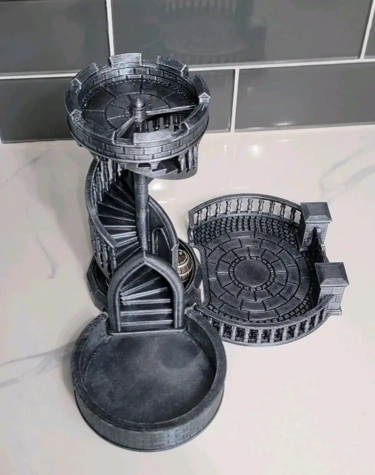 AUSPDICE Dice Rolling Tower & Tray Spiral Stairs Retro Castle D&D, RPG