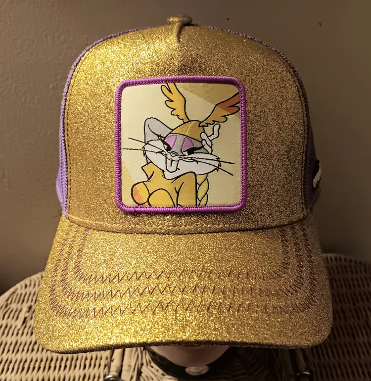 Looney Tunes Valkyrie Brunhilda Bugs Bunny trucker cap NEW viking gold glitter