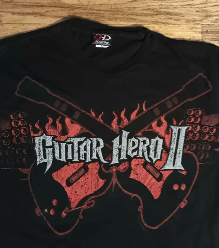 Vintage Guitar Hero 1&2 Promo Video Game Tee xbox playstation rare Headline Ent