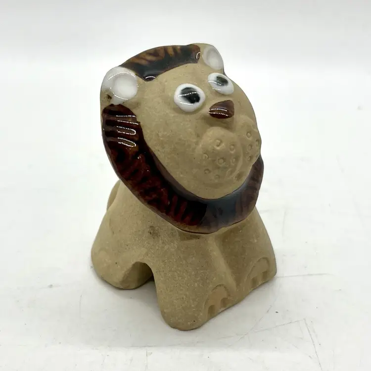 Vintage Pottery Lion Flower Pot Figurine Small Planter Sitter 2”