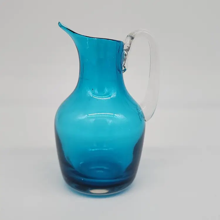 Whitefriars Cobalt Blue Glass Creamer Clear Handle MCM VTG 5"