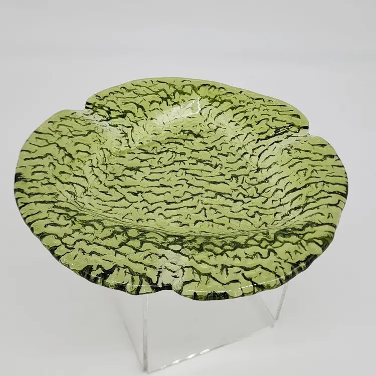 Green Textured Glass Ashtray Dish Low Base Abstract Round Design VTG